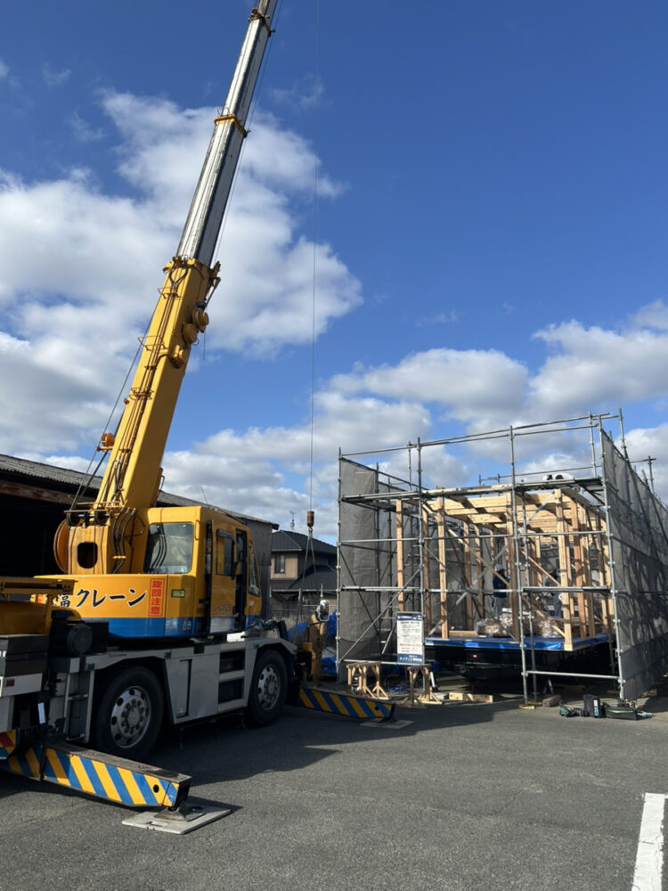 クレーンを使って、しっかり組み上げていきます。